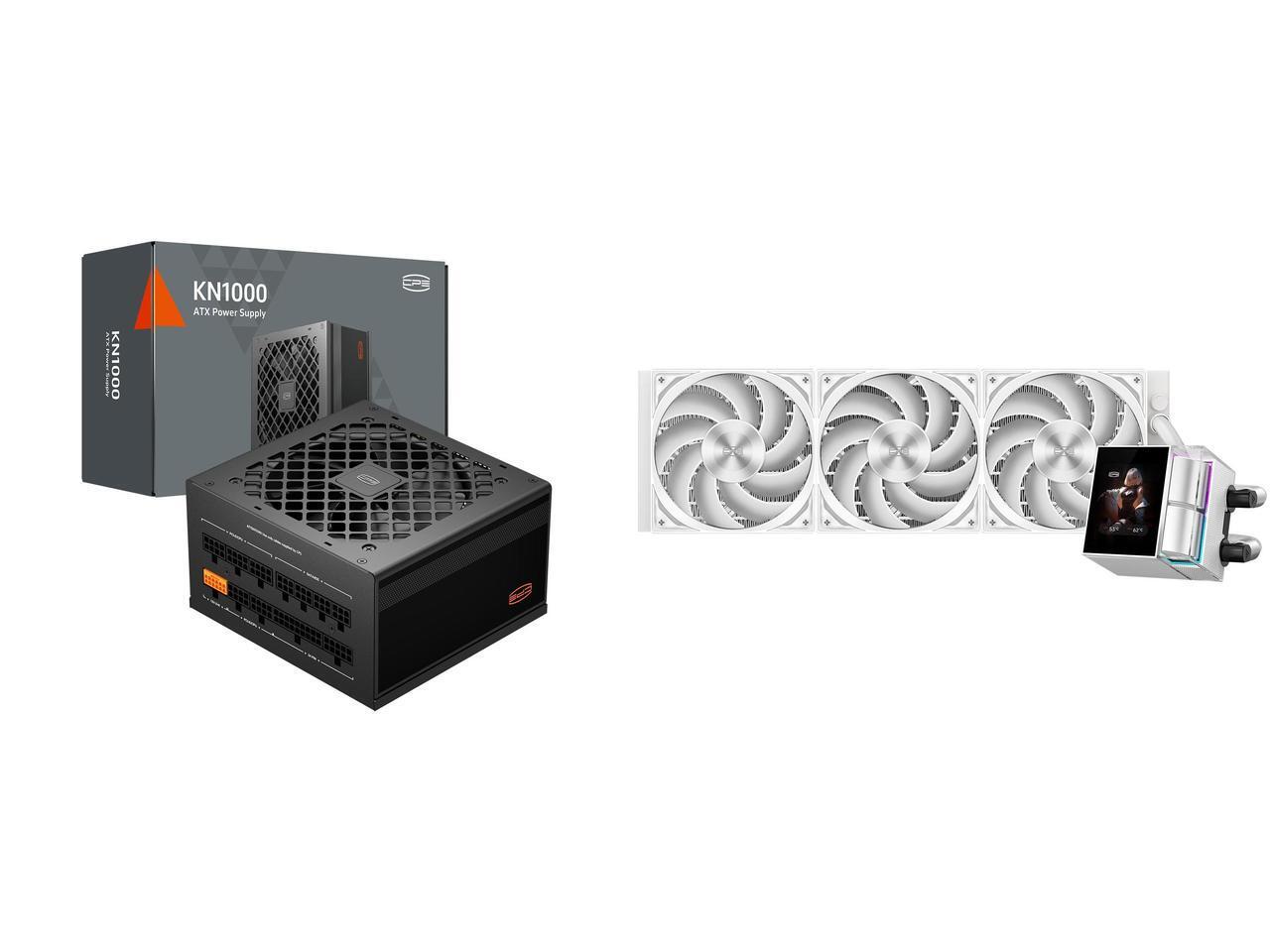 PCCOOLER CPS KN1000 Fully Modular Power Supply, 80 PLUS Gold 1000W PSU, Native 12V-2x6 Connector, ATX 3.1 & PCIe 5.1 Ready, Dual CPU Power Cables, 105°C Rated Japanese Capacitors, P3-KN1000-G1F and 1 x PCCOOLER CPS DS360 Display AIO CPU Liquid Cooler, 360mm Radiator, 315W TDP, ARGB LEDs & Customizable 2.4" IPS LCD Display, Ceramic Bearing, for Intel LGA 1851/1700/1200/115X & AMD AM5/AM4, White