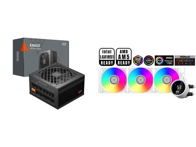 PCCOOLER CPS KN650 Fully Modular Power Supply, 80 PLUS Gold 650W PSU, Native 12V-2x6 Connector, ATX 3.1 & PCIe 5.1 Ready, Dual CPU Power Cables, 105°C Rated Japanese Capacitors, P3-KN650-G1F and 1 x PCCOOLER CPS DA360 Pro ARGB Digital AIO CPU Liquid Cooler, 360mm Radiator, 300W TDP, 270° Rotatable Digital Display, Infinity Halo ARGB Effect, for Intel LGA 1851/1700/1200/115X & AMD AM5/AM4, White
