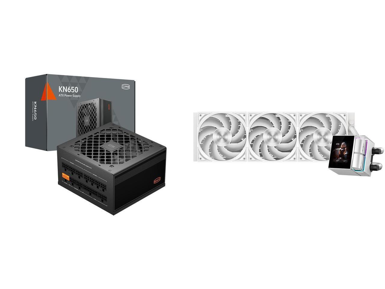 PCCOOLER CPS KN650 Fully Modular Power Supply, 80 PLUS Gold 650W PSU, Native 12V-2x6 Connector, ATX 3.1 & PCIe 5.1 Ready, Dual CPU Power Cables, 105°C Rated Japanese Capacitors, P3-KN650-G1F and 1 x PCCOOLER CPS DS360 Display AIO CPU Liquid Cooler, 360mm Radiator, 315W TDP, ARGB LEDs & Customizable 2.4" IPS LCD Display, Ceramic Bearing, for Intel LGA 1851/1700/1200/115X & AMD AM5/AM4, White