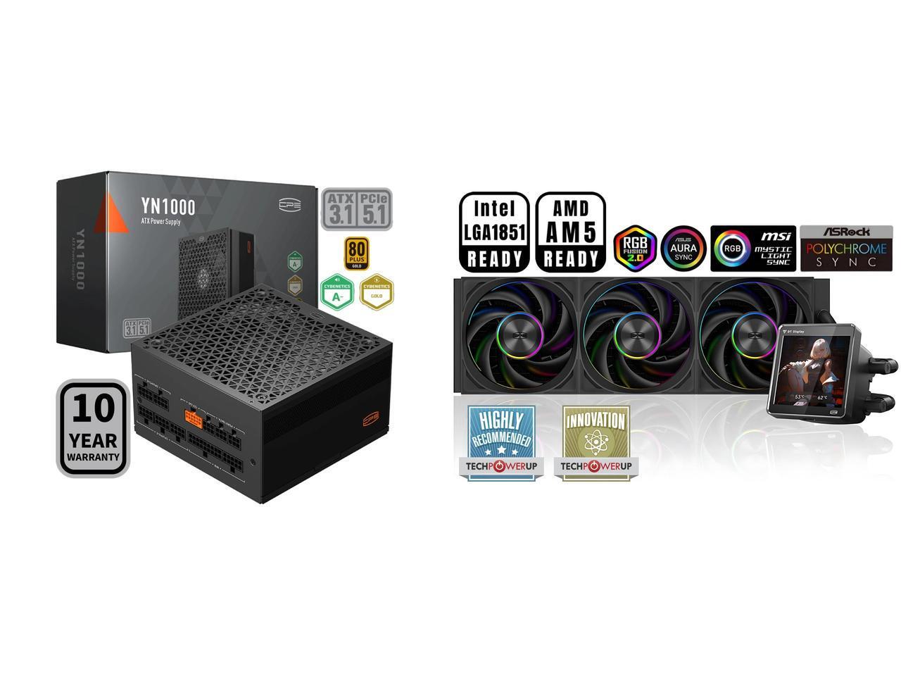 PCCOOLER CPS YN1000 Fully Modular Power Supply, 80 PLUS Gold 1000W PSU, 12V-2x6 Cable, ATX 3.1 & PCIe 5.1 Ready, 105°C Rated Japanese Capacitors, ECO Mode, 135mm FDB Fan, 10 Years Warranty and 1 x PCCOOLER CPS DT360 ARGB Display AIO CPU Liquid Cooler, 360mm Radiator, 320W TDP, Customizable & Magnetic 3.4" IPS LCD Display, Ceramic Bearing, for Intel LGA 1851/1700/1200/115X & AMD AM5/AM4, Black