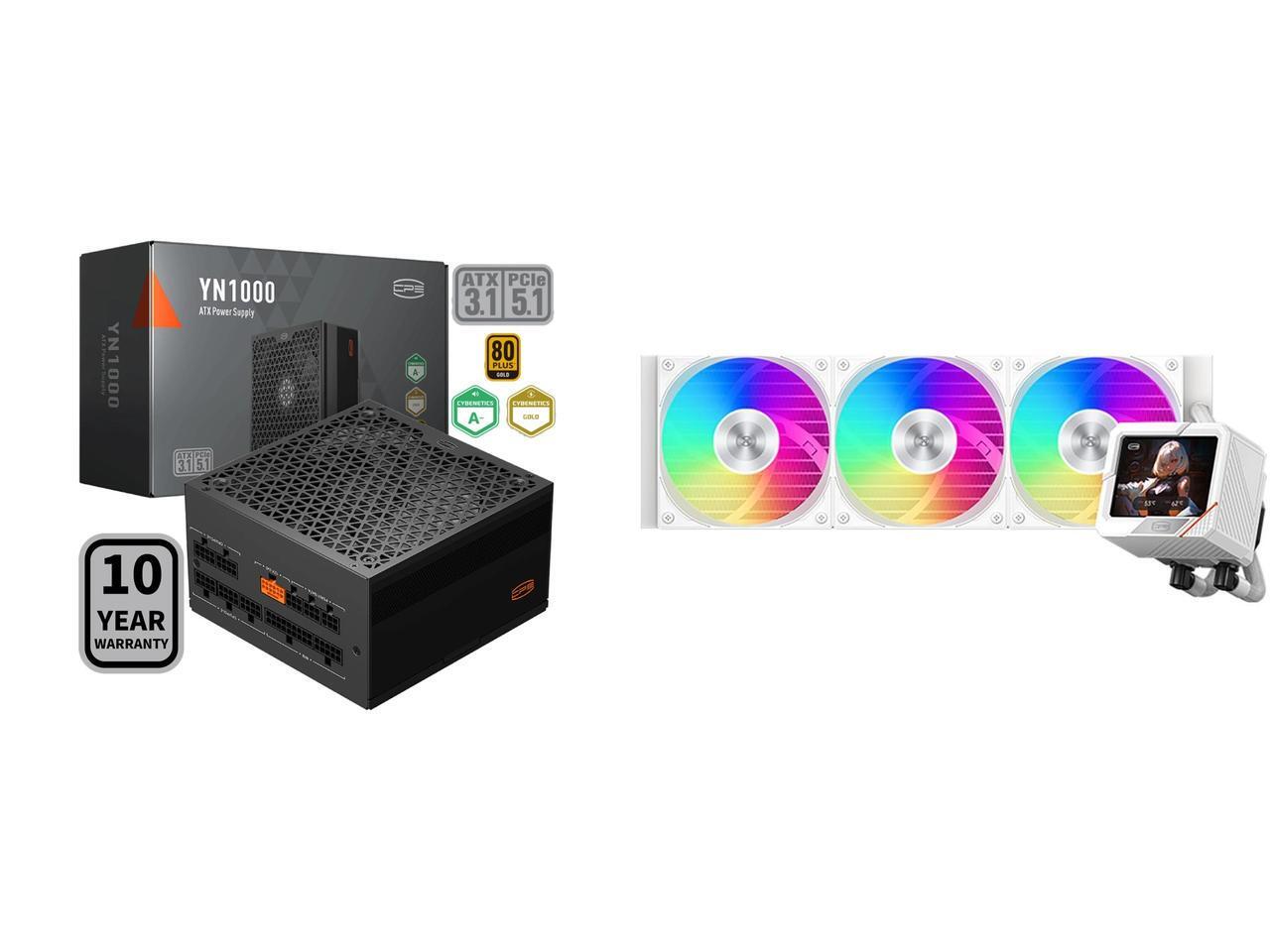 PCCOOLER CPS YN1000 Fully Modular Power Supply, 80 PLUS Gold 1000W PSU, 12V-2x6 Cable, ATX 3.1 & PCIe 5.1 Ready, 105°C Rated Japanese Capacitors, ECO Mode, 135mm FDB Fan, 10 Years Warranty and 1 x PCCOOLER CPS GT360 ARGB Display AIO CPU Liquid Cooler, 310W TDP, Customizable 3.5" IPS LCD Cyber Style Display, Ceramic Bearing, High Speed Fans, for Intel LGA 1851/1700/1200/115X & AMD AM5/AM4, White