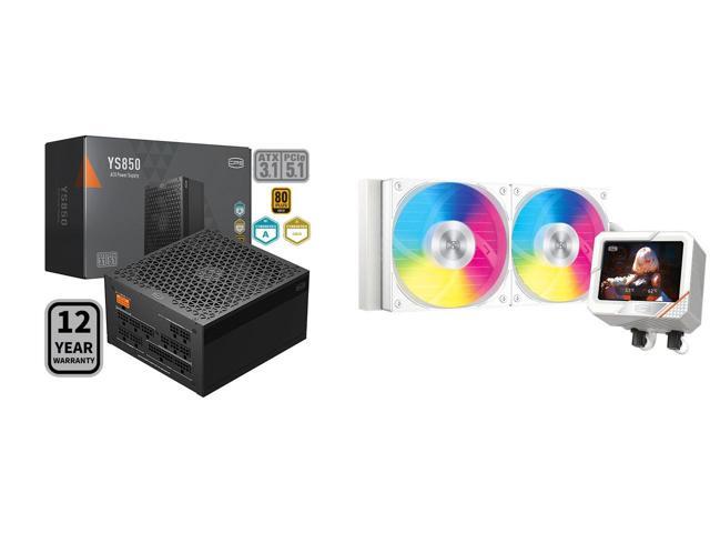 PCCOOLER CPS YS850 Fully Modular Power Supply, 80 PLUS Gold 850W PSU, 12V-2x6 Cable, ATX 3.1 & PCIe 5.1 Ready, 105°C Rated Japanese Capacitors, ECO Mode, 135mm FDB Fan, 12 Years Warranty and 1 x PCCOOLER CPS GT240 ARGB Display AIO CPU Liquid Cooler, 240mm Radiator, 280W TDP, Customizable 3.5" IPS LCD Cyber Style Display, Ceramic Bearing, for Intel LGA 1851/1700/1200/115X & AMD AM5/AM4, White