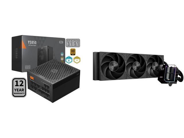 PCCOOLER CPS YS850 Fully Modular Power Supply, 80 PLUS Gold 850W PSU, 12V-2x6 Cable, ATX 3.1 & PCIe 5.1 Ready, 105°C Rated Japanese Capacitors, ECO Mode, 135mm FDB Fan, 12 Years Warranty and 1 x PCCOOLER CPS DS360Pro Digital AlO CPU Liquid Cooler, 360mm Radiator, 310W TDP, ARGB LEDs & Digital Display, Aluminum Pump Cover, for Intel LGA20XX/1851/1700/1200/115X & AMD AM5/AM4, Black