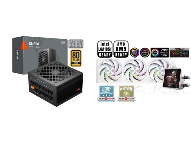 PCCOOLER CPS KN850 Fully Modular Power Supply, 80 PLUS Gold 850W PSU, Native 12V-2x6 Connector, ATX 3.1 & PCIe 5.1 Ready, Dual CPU Power Cables, 105°C Rated Japanese Capacitors, P3-KN850-G1F and 1 x PCCOOLER CPS DT360 ARGB Display AIO CPU Liquid Cooler, 360mm Radiator, 320W TDP, Customizable & Magnetic 3.4" IPS LCD Display, Ceramic Bearing, for Intel LGA 1851/1700/1200/115X & AMD AM5/AM4, White