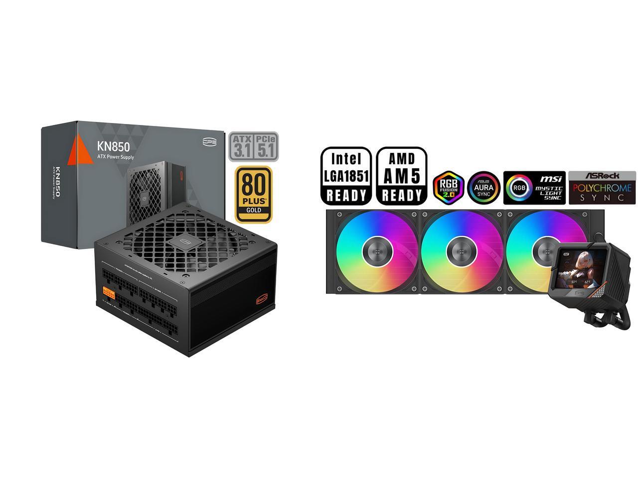 PCCOOLER CPS KN850 Fully Modular Power Supply, 80 PLUS Gold 850W PSU, Native 12V-2x6 Connector, ATX 3.1 & PCIe 5.1 Ready, Dual CPU Power Cables, 105°C Rated Japanese Capacitors, P3-KN850-G1F and 1 x PCCOOLER CPS GT360 ARGB Display AIO CPU Liquid Cooler, 360mm Radiator, 310W TDP, Customizable 3.5" IPS LCD Cyber Style Display, Ceramic Bearing, for Intel LGA 1851/1700/1200/115X & AMD AM5/AM4, Black