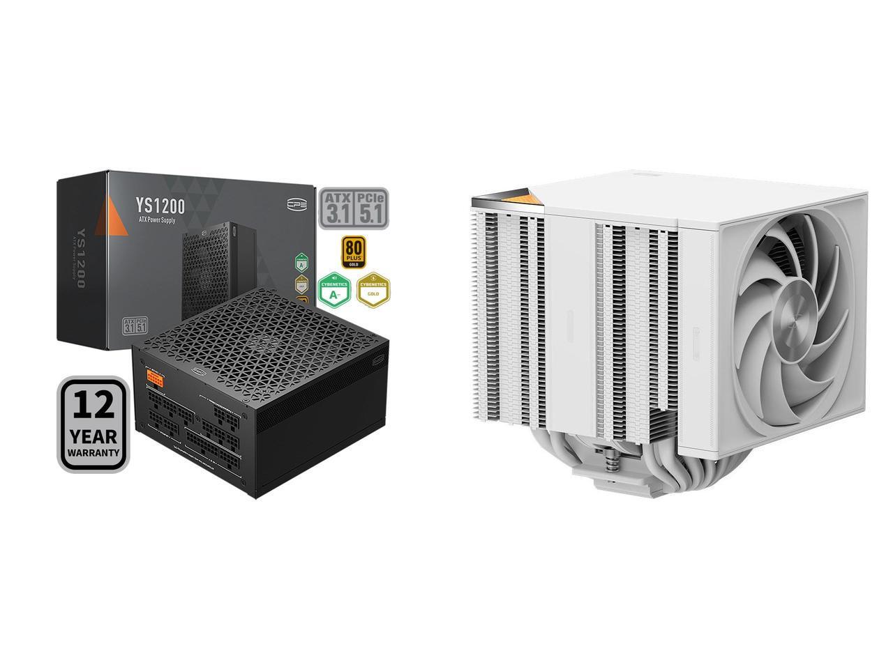 PCCOOLER CPS YS1200 Fully Modular Power Supply, 80 PLUS Gold 1200W PSU, 12V-2x6 Cable, ATX 3.1 & PCIe 5.1 Ready, 105°C Rated Japanese Capacitors, ECO Mode, 135mm FDB Fan, 12 Years Warranty and 1 x PCCOOLER CPS RZ820 Dual Tower CPU Air Cooler, 8 Heat Pipes, 290W TDP, Magnetic Aluminum ARGB Top Cover, 165mm Tall, 120mm & 140mm PWM Fans, for Intel LGA 1851/1700/1200/115X/20XX & AMD AM5/AM4, White