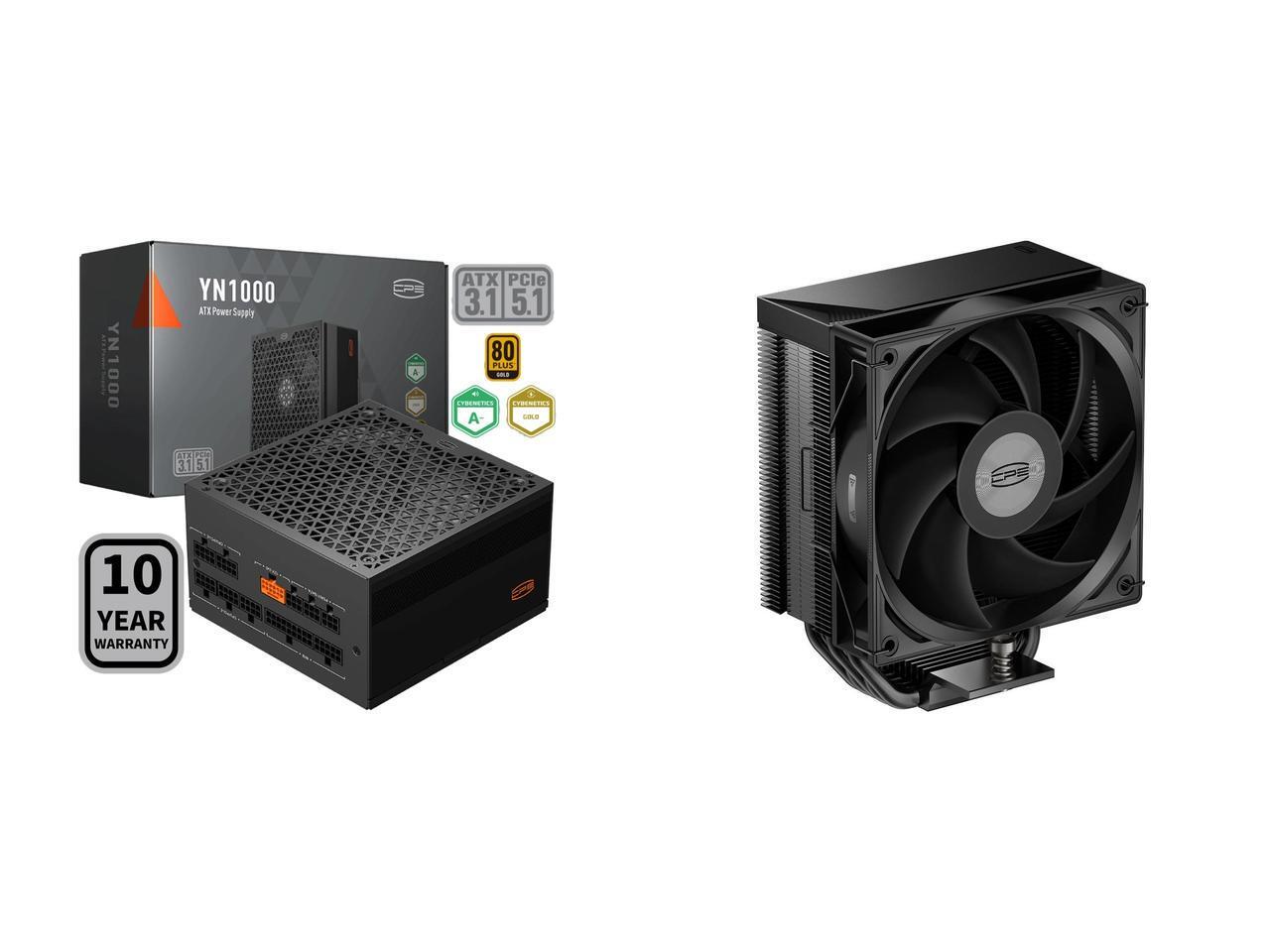 PCCOOLER CPS YN1000 Fully Modular Power Supply, 80 PLUS Gold 1000W PSU, 12V-2x6 Cable, ATX 3.1 & PCIe 5.1 Ready, 105°C Rated Japanese Capacitors, ECO Mode, 135mm FDB Fan, 10 Years Warranty and 1 x PCCOOLER CPS RT500 TC CPU Air Cooler, 5 Direct Contact Heat Pipes, 245W TDP, 152mm Tall, 120mm PWM Slient Fan, for Intel LGA1851/1700/1200/115X & AMD AM5/AM4, Black
