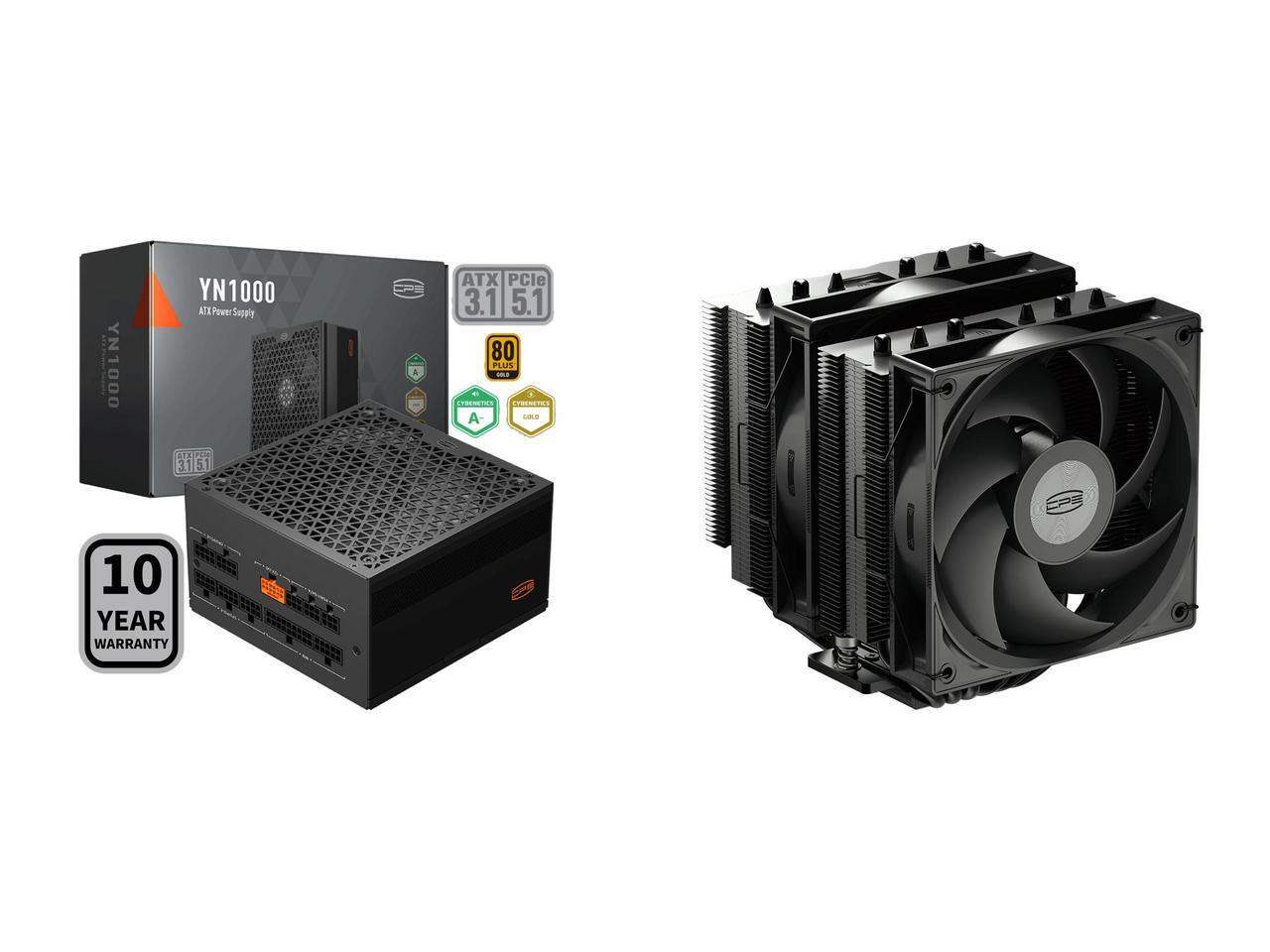 PCCOOLER CPS YN1000 Fully Modular Power Supply, 80 PLUS Gold 1000W PSU, 12V-2x6 Cable, ATX 3.1 & PCIe 5.1 Ready, 105°C Rated Japanese Capacitors, ECO Mode, 135mm FDB Fan, 10 Years Warranty and 1 x PCCOOLER CPS RT620Pro Dual Tower CPU Air Cooler, 6 Heat Pipes, 265W TDP, 153mm Tall, 120mm PWM Slient Fans, Tower Reinforced Structure, for Intel LGA1851/1700/1200/115X & AMD AM5/AM4, Black