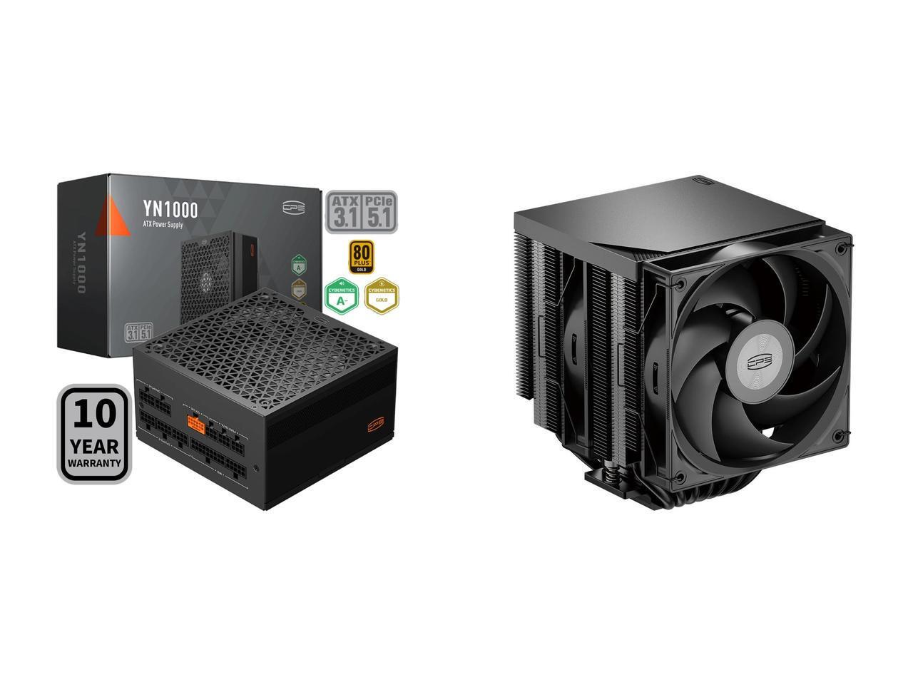 PCCOOLER CPS YN1000 Fully Modular Power Supply, 80 PLUS Gold 1000W PSU, 12V-2x6 Cable, ATX 3.1 & PCIe 5.1 Ready, 105°C Rated Japanese Capacitors, ECO Mode, 135mm FDB Fan, 10 Years Warranty and 1 x PCCOOLER CPS RT720 TC Dual Tower CPU Air Cooler, 7 Heat Pipes, 270W TDP, Minimalist Top Cover, Tower Dual-Reinforced Structure, Hydraulic Bearing, for Intel LGA1851/1700/1200/115X & AMD AM5/AM4, Black