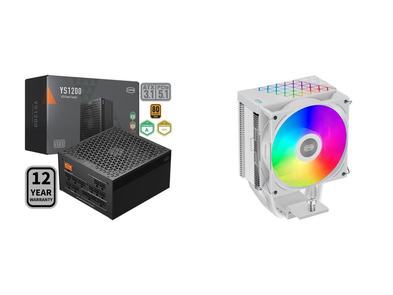 PCCOOLER CPS YS1200 Fully Modular Power Supply, 80 PLUS Gold 1200W PSU, 12V-2x6 Cable, ATX 3.1 & PCIe 5.1 Ready, 105°C Rated Japanese Capacitors, ECO Mode, 135mm FDB Fan, 12 Years Warranty and 1 x PCCOOLER CPS R400 ARGB CPU Air Cooler, 4 Direct Contact Heat Pipes, 180W TDP, ARGB Top Cover, 133mm Tall, 92mm PWM Slient ARGB Fan, for Intel LGA 1851/1700/1200/115X & AMD AM5/AM4, White