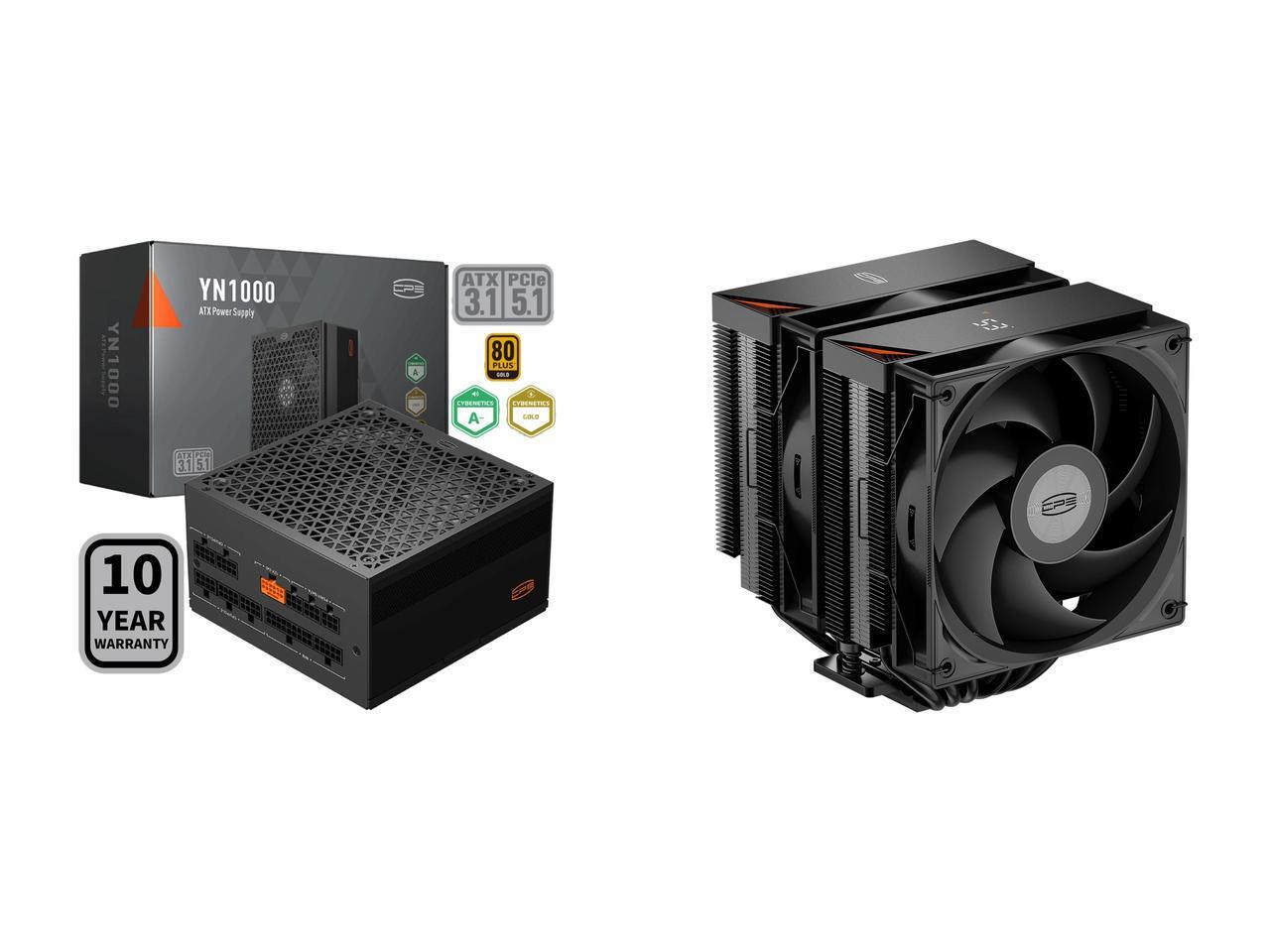 PCCOOLER CPS YN1000 Fully Modular Power Supply, 80 PLUS Gold 1000W PSU, 12V-2x6 Cable, ATX 3.1 & PCIe 5.1 Ready, 105°C Rated Japanese Capacitors, ECO Mode, 135mm FDB Fan, 10 Years Warranty and 1 x PCCOOLER CPS RT620Pro Digital Dual Tower CPU Air Cooler, 6 Heat Pipes, 265W TDP, Digital Display Top Cover, 157mm Tall, Reinforced Structure, for Intel LGA1851/1700/1200/115X & AMD AM5/AM4, Black