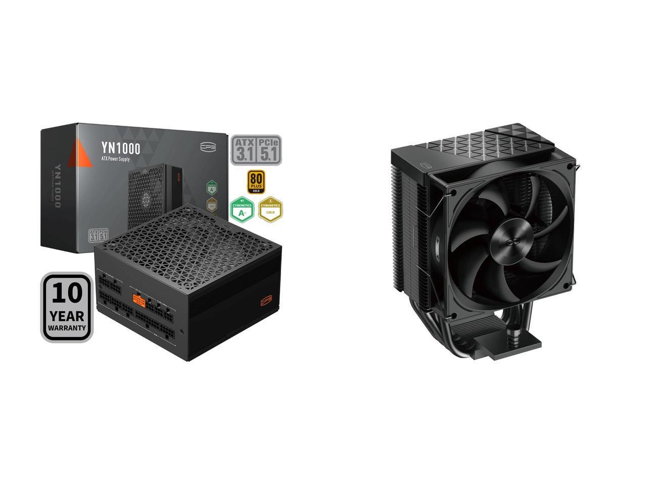 PCCOOLER CPS YN1000 Fully Modular Power Supply, 80 PLUS Gold 1000W PSU, 12V-2x6 Cable, ATX 3.1 & PCIe 5.1 Ready, 105°C Rated Japanese Capacitors, ECO Mode, 135mm FDB Fan, 10 Years Warranty and 1 x PCCOOLER CPS R400 CPU Air Cooler, 4 Direct Contact Heat Pipes, 180W TDP, 133mm Tall, 92mm PWM Slient Fan, for Intel LGA 1851/1700/1200/115X & AMD AM5/AM4, Black