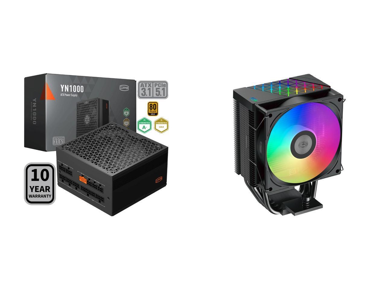 PCCOOLER CPS YN1000 Fully Modular Power Supply, 80 PLUS Gold 1000W PSU, 12V-2x6 Cable, ATX 3.1 & PCIe 5.1 Ready, 105°C Rated Japanese Capacitors, ECO Mode, 135mm FDB Fan, 10 Years Warranty and 1 x PCCOOLER CPS R400 ARGB CPU Air Cooler, 4 Direct Contact Heat Pipes, 180W TDP, ARGB Top Cover, 133mm Tall, 92mm PWM Slient ARGB Fan, for Intel LGA 1851/1700/1200/115X & AMD AM5/AM4, Black