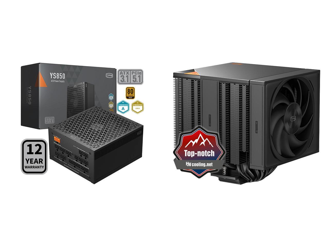 PCCOOLER CPS YS850 Fully Modular Power Supply, 80 PLUS Gold 850W PSU, 12V-2x6 Cable, ATX 3.1 & PCIe 5.1 Ready, 105°C Rated Japanese Capacitors, ECO Mode, 135mm FDB Fan, 12 Years Warranty and 1 x PCCOOLER CPS RZ820 Dual Tower CPU Air Cooler, 8 Heat Pipes, 290W TDP, Magnetic Aluminum ARGB Top Cover, 165mm Tall, 120mm & 140mm PWM Fans, for Intel LGA 1851/1700/1200/115X/20XX & AMD AM5/AM4, Black