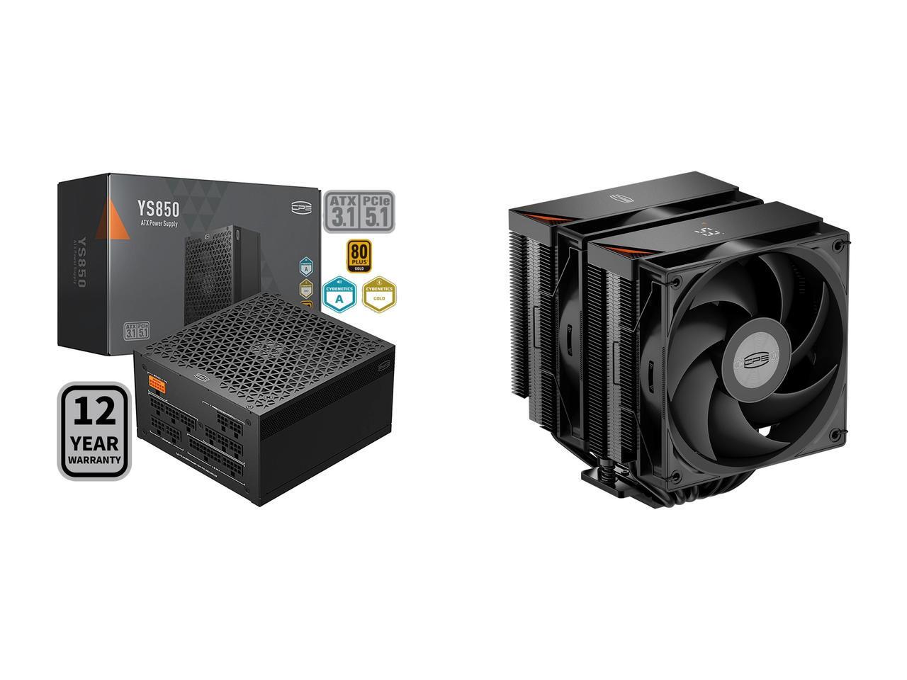 PCCOOLER CPS YS850 Fully Modular Power Supply, 80 PLUS Gold 850W PSU, 12V-2x6 Cable, ATX 3.1 & PCIe 5.1 Ready, 105°C Rated Japanese Capacitors, ECO Mode, 135mm FDB Fan, 12 Years Warranty and 1 x PCCOOLER CPS RT620Pro Digital Dual Tower CPU Air Cooler, 6 Heat Pipes, 265W TDP, Digital Display Top Cover, 157mm Tall, Reinforced Structure, for Intel LGA1851/1700/1200/115X & AMD AM5/AM4, Black