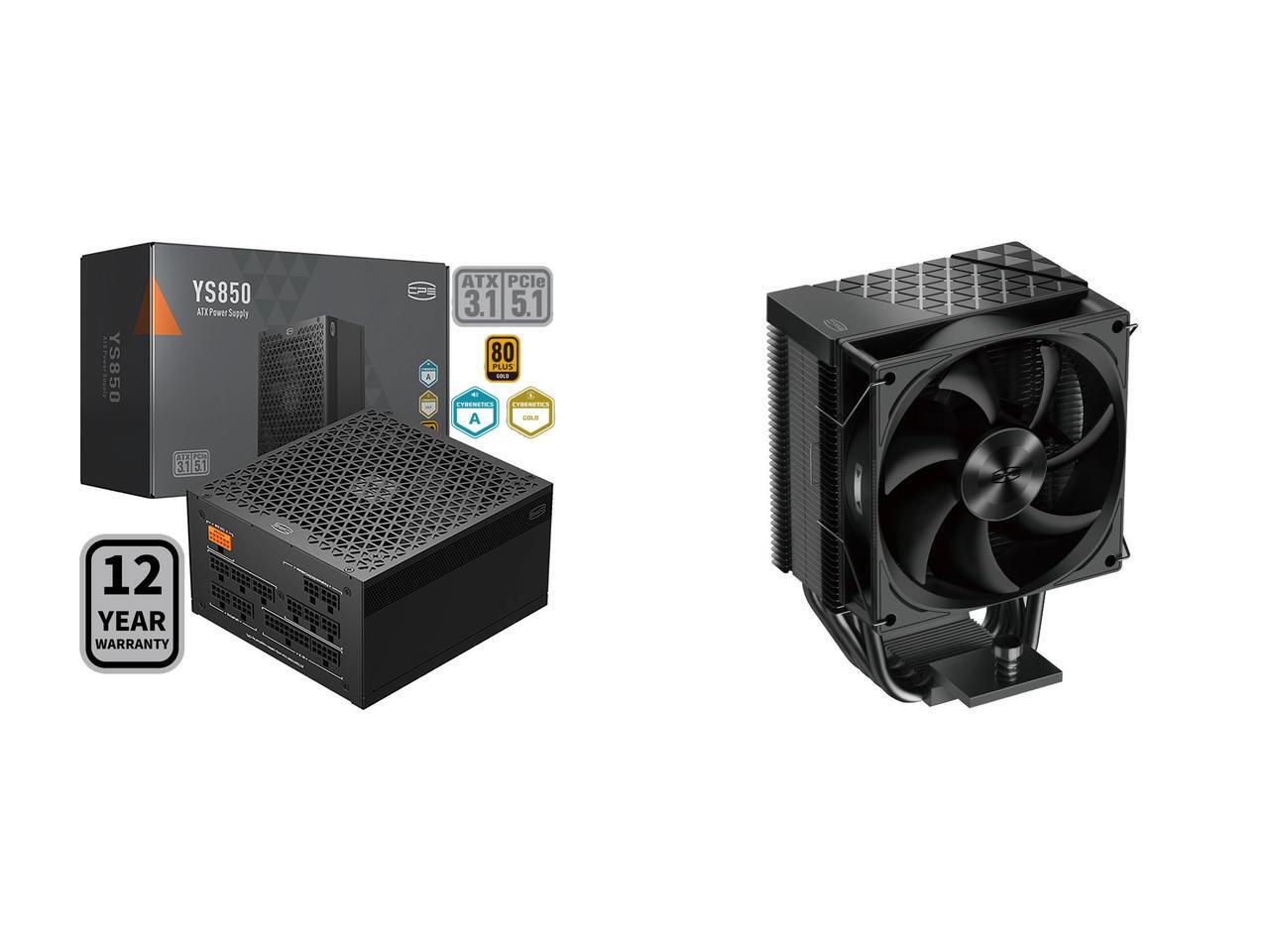 PCCOOLER CPS YS850 Fully Modular Power Supply, 80 PLUS Gold 850W PSU, 12V-2x6 Cable, ATX 3.1 & PCIe 5.1 Ready, 105°C Rated Japanese Capacitors, ECO Mode, 135mm FDB Fan, 12 Years Warranty and 1 x PCCOOLER CPS R400 CPU Air Cooler, 4 Direct Contact Heat Pipes, 180W TDP, 133mm Tall, 92mm PWM Slient Fan, for Intel LGA 1851/1700/1200/115X & AMD AM5/AM4, Black