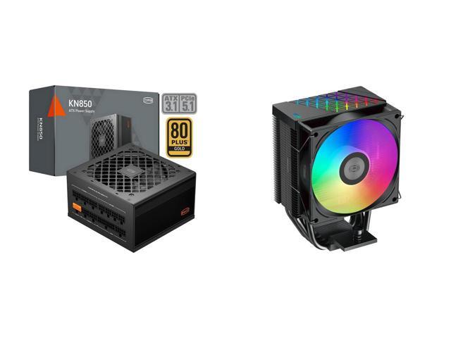 PCCOOLER CPS KN850 Fully Modular Power Supply, 80 PLUS Gold 850W PSU, Native 12V-2x6 Connector, ATX 3.1 & PCIe 5.1 Ready, Dual CPU Power Cables, 105°C Rated Japanese Capacitors, P3-KN850-G1F and 1 x PCCOOLER CPS R400 ARGB CPU Air Cooler, 4 Direct Contact Heat Pipes, 180W TDP, ARGB Top Cover, 133mm Tall, 92mm PWM Slient ARGB Fan, for Intel LGA 1851/1700/1200/115X & AMD AM5/AM4, Black