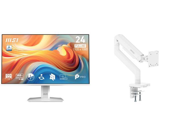 MSI 24" Full HD 144Hz IPS with Adaptive-Sync 1ms HDR Ready Built-in Speakers white computer monitor for both work and gaming MP243W E14 MSI MAG MT201W - Premium Heavy Duty Single Monitor Stand Arm, Supports 17-49" Screens and 44 lbs, VESA C