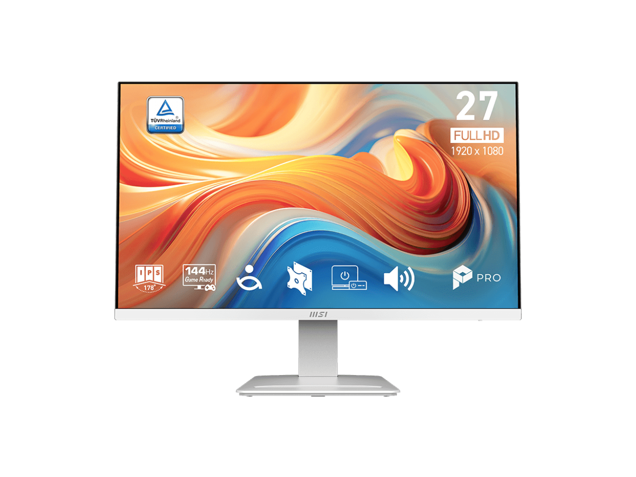 MSI 27" Full HD 144Hz IPS white LCD Computer Monitor with Built-in Speakers for both work and gaming PRO MP273W E14A MSI MAG MT201DW - Premium Heavy Duty Dual Monitor Stand Arms, 17-45" Support, VESA Compatible, Adjustable Spring Assisted M