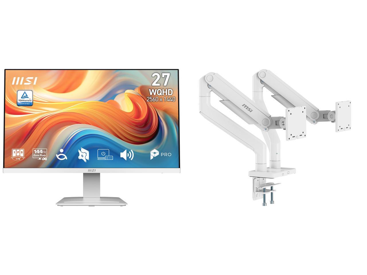 The PRO MP273QW E14 monitor combines a 144Hz refresh rate and Adaptive-Sync for smooth gaming and work. Its ergonomic design, IPS Panel, and HDR Ready feature enhance comfort and immersion, making it the perfect all-in-one solution.