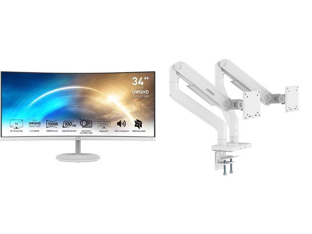 MSI 34" Ultrawide QHD 2K 1440P 100Hz 1ms Anti-Flicker & Low Blue Light 1500R Curved White LCD Computer Monitor with Built-in Speakers Pro MP341CQW MSI MAG MT201DW - Premium Heavy Duty Dual Monitor Stand Arms, 17-45" Support, VESA Compatible
