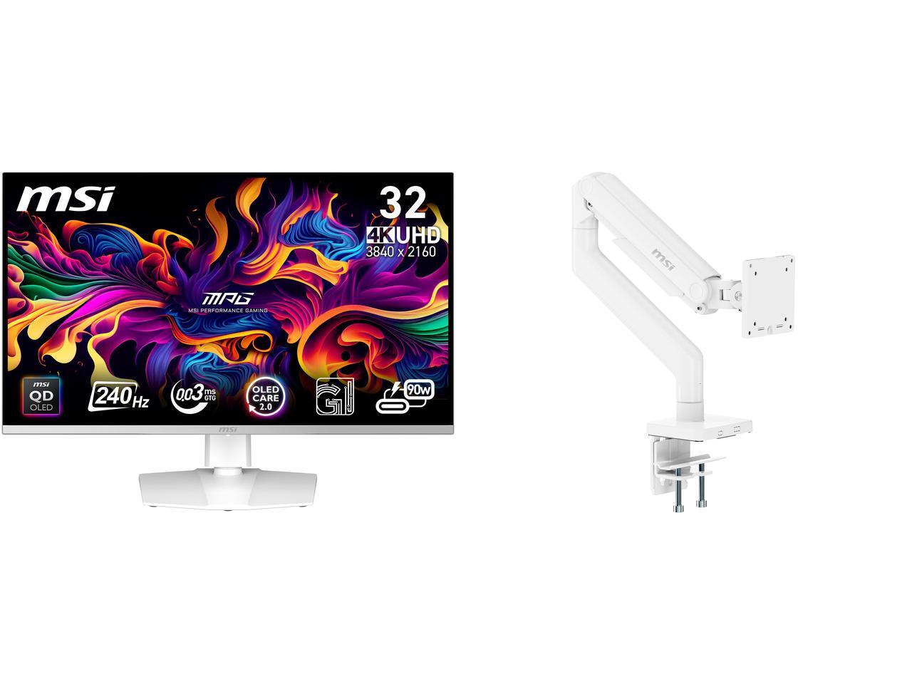 MSI 32" UHD 4K 240Hz AMD FreeSync Premium Pro & G-Sync Compatible 0.03ms HDR400 USB-C white OLED Gaming Computer Monitor with Height Adjustable, Pivot, Swivel & Tilt Stand MPG 321URXW QD-OLED MSI MAG MT201W - Premium Heavy Duty Single Moni