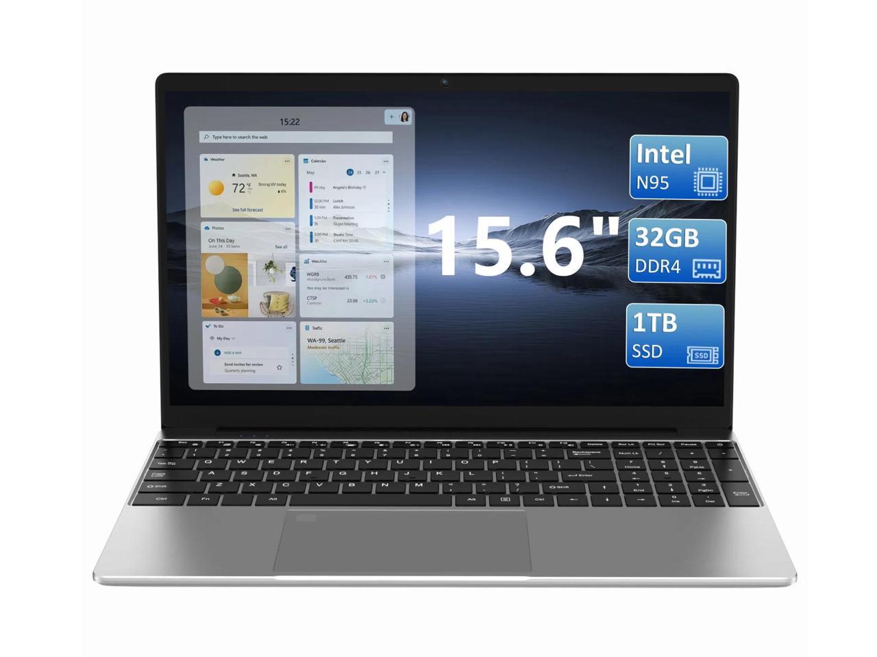 KurieTim Laptop Computer, 32GB DDR4 RAM, 1TB SSD, Intel N95 CPU(up to 3.4 GHz), Windows 11 Pro Business Laptops, 15.6" FHD IPS 1920 x 1080 Screen, Mini HDMI, USB3.0x2