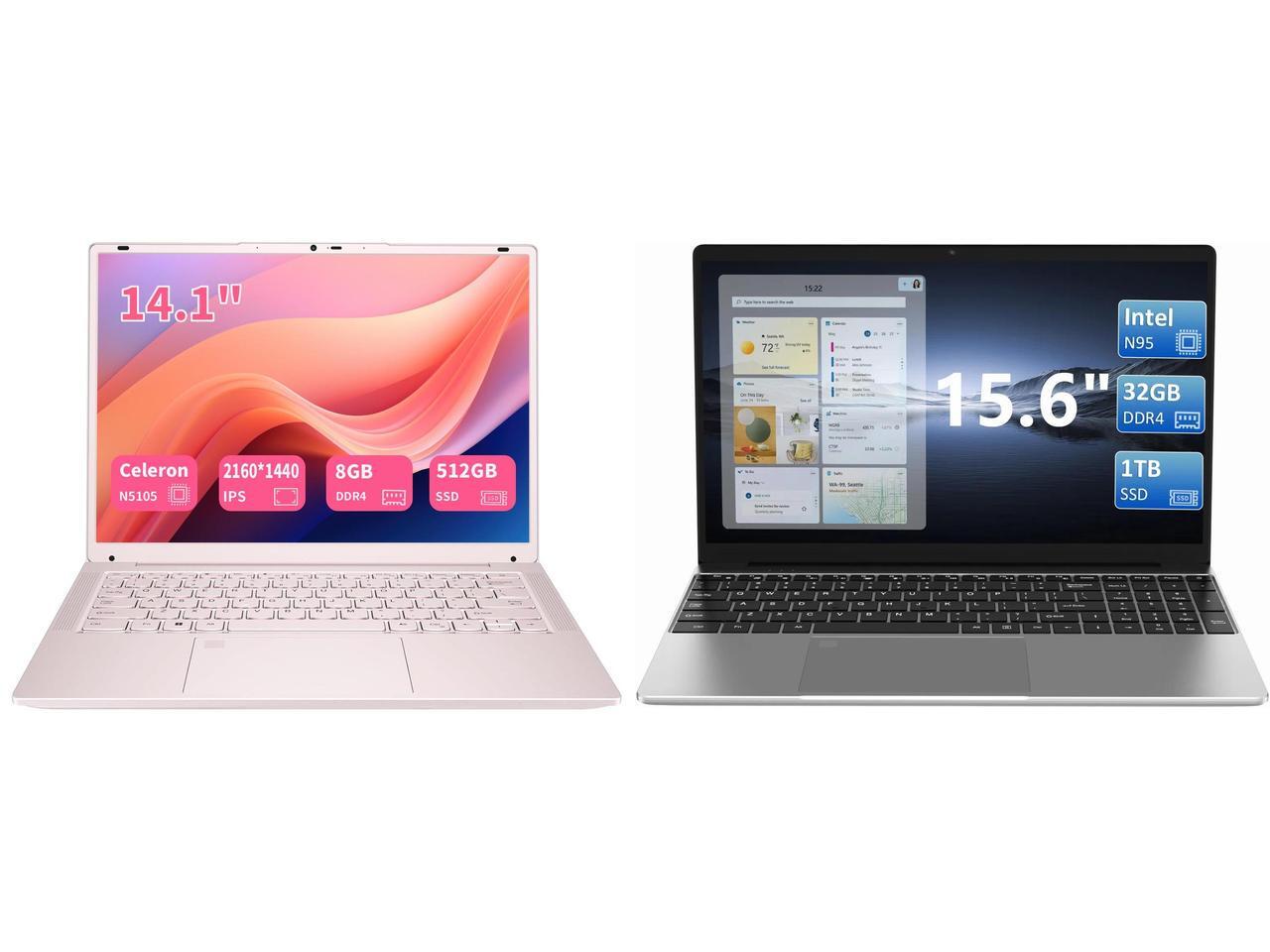 KurieTim 8GB RAM Laptop Computer with 512GB PCIe SSD, Quad-Core Processor Up to 2.90GHz, 14.1" 2K Display, Backlit Keyboard, Fingerprint Recognition, Webcam, Win11 Pro Laptops for Students Business and 1 x KurieTim Laptop Computer, 32GB DDR4 RAM, 1TB SSD, Intel N95 CPU(up to 3.4 GHz), Windows 11 Pro Business Laptops, 15.6" FHD IPS 1920 x 1080 Screen, Mini HDMI, USB3.0x2