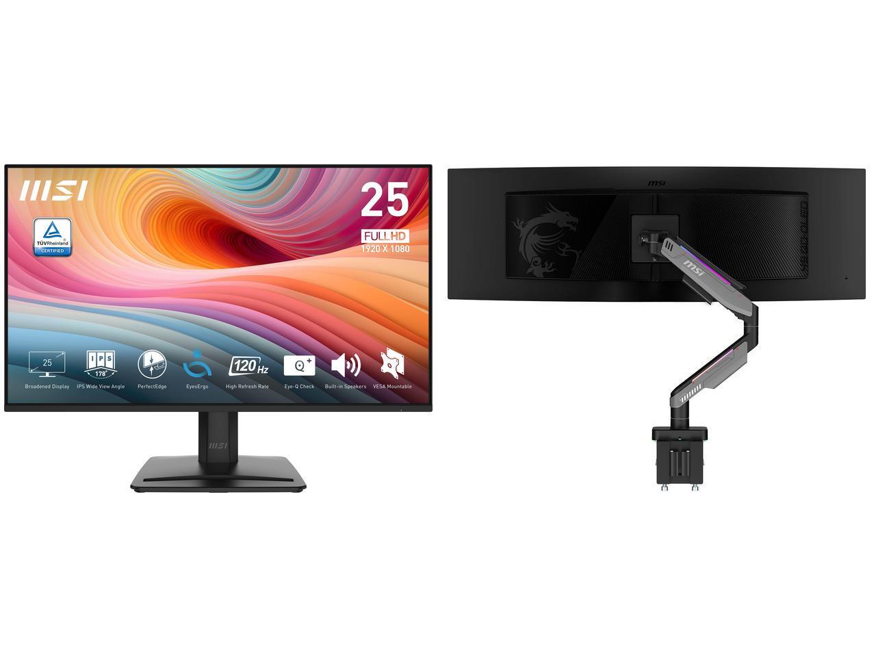 MSI 25" (24.5" viewable) Full HD 120Hz IPS 1ms Less Blue Light Anti-Flicker Anti-Glare Built-In Speakers Computer Monitor with phone accessory stand PRO MP251 E2 MSI MPG MT201R V2 - Premium RGB Single Monitor Stand Arm, Supports 17-49" Scr