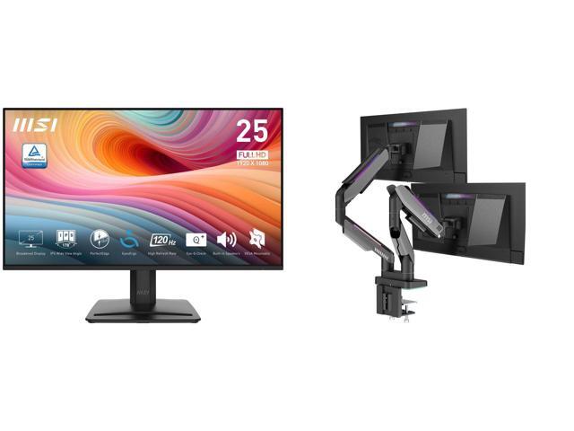 MSI 25" (24.5" viewable) Full HD 120Hz IPS 1ms Less Blue Light Anti-Flicker Anti-Glare Built-In Speakers Computer Monitor with phone accessory stand PRO MP251 E2 MSI MPG MT201DR V2 - Premium RGB Dual Monitor Stand Arms, 17-35" Support, VESA