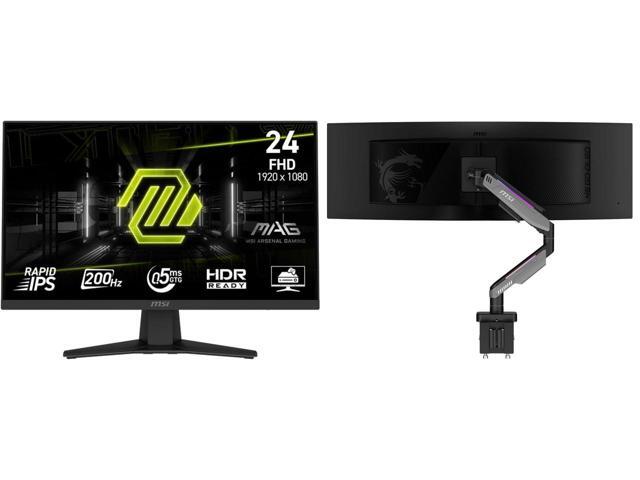MSI 24" (23.8" viewable) Full HD 200Hz IPS with AMD FreeSync Premium 0.5ms HDR Ready Low Blue Light Ai Vision Gaming Computer Monitor MAG244F MSI MPG MT201R V2 - Premium RGB Single Monitor Stand Arm, Supports 17-49" Screens and 44 lbs, VE