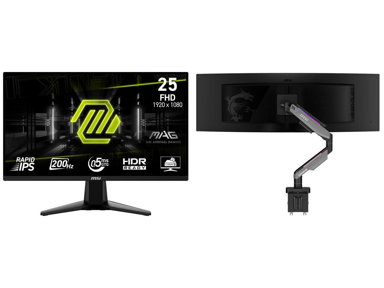 MSI 24" (24.5" viewable) Full HD 200Hz IPS with AMD FreeSync Premium 0.5ms HDR Ready Ai Vision Less Blue Light Gaming Computer Monitor MAG255F E20 MSI MPG MT201R V2 - Premium RGB Single Monitor Stand Arm, Supports 17-49" Screens and 44 lbs