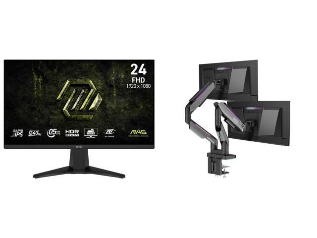 MSI 24" (23.8" viewable) Full HD 240Hz IPS 0.5ms HDR ready with AMD FreeSync (AMD Adaptive Sync) Gaming Computer Monitor MAG 245F X24 MSI MPG MT201DR V2 - Premium RGB Dual Monitor Stand Arms, 17-35" Support, VESA Compatible, Adjustable Heav