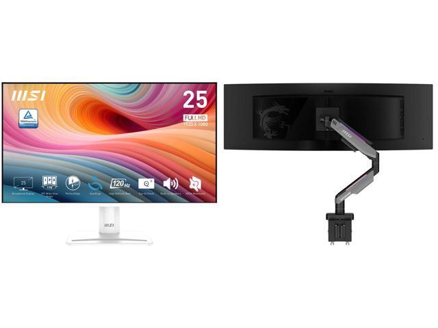 MSI 24" (24.5" viewable) Full HD 120Hz IPS with Adaptive Sync 1ms HDR Ready Built-in Speakers White Computer Monitor with phone accessory slot on stand PRO MP251W E2 MSI MPG MT201R V2 - Premium RGB Single Monitor Stand Arm, Supports 17-49"