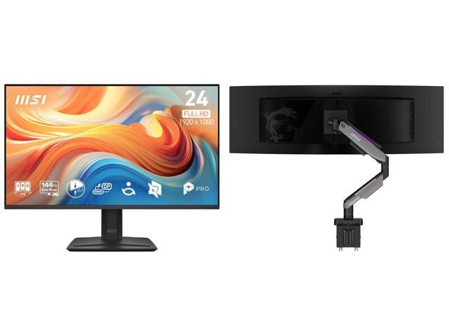 MSI 24" (23.8" viewable) Full HD 144Hz IPS AMD FreeSync (Adaptive Sync) 1ms USB-C Built-in Speaker Computer Monitor for both Work and Gaming PRO MP242 E14C MSI MPG MT201R V2 - Premium RGB Single Monitor Stand Arm, Supports 17-49" Screens a