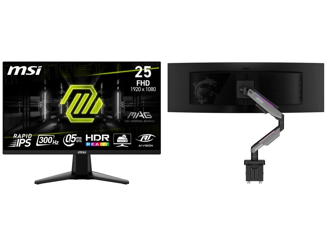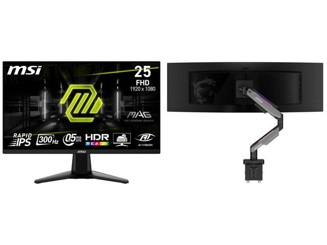 MSI 24" (24.5" viewable) Full HD 300Hz IPS with AMD FreeSync Premium 0.5ms HDR Ready Ai vision Gaming Computer Monitor MAG 255XF MSI MPG MT201R V2 - Premium RGB Single Monitor Stand Arm, Supports 17-49" Screens and 44 lbs, VESA Compatible,