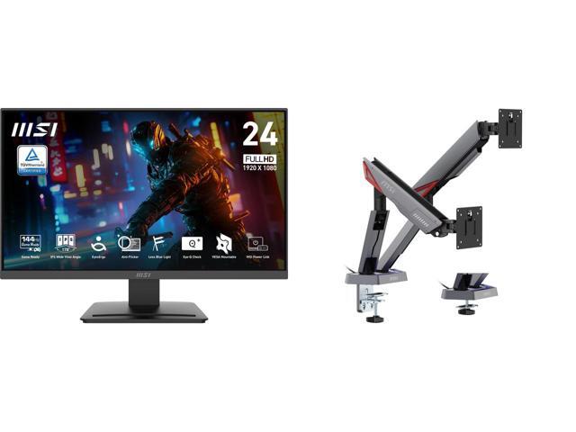 MSI 24" Full HD 144Hz IPS with AMD Adaptive Sync 1ms HDR Ready 102% sRGB LCD Gaming Computer Monitor with accessory slot on stand for both Work and Gaming PRO MP243L E14 MSI MPG MT161DR - Premium RGB Dual Monitor Stand Arms, 17-38" Support,