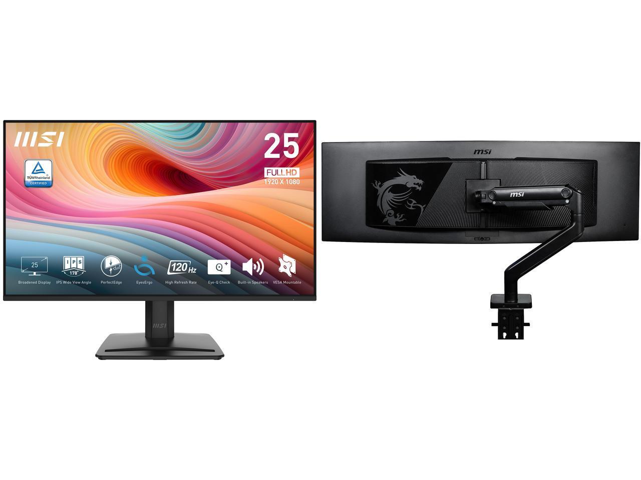 MSI 25" (24.5" viewable) Full HD 120Hz IPS 1ms Less Blue Light Anti-Flicker Anti-Glare Built-In Speakers Computer Monitor with phone accessory stand PRO MP251 E2 MSI MAG MT201 - Premium Heavy Duty Single Monitor Stand Arm, Supports 17-49"