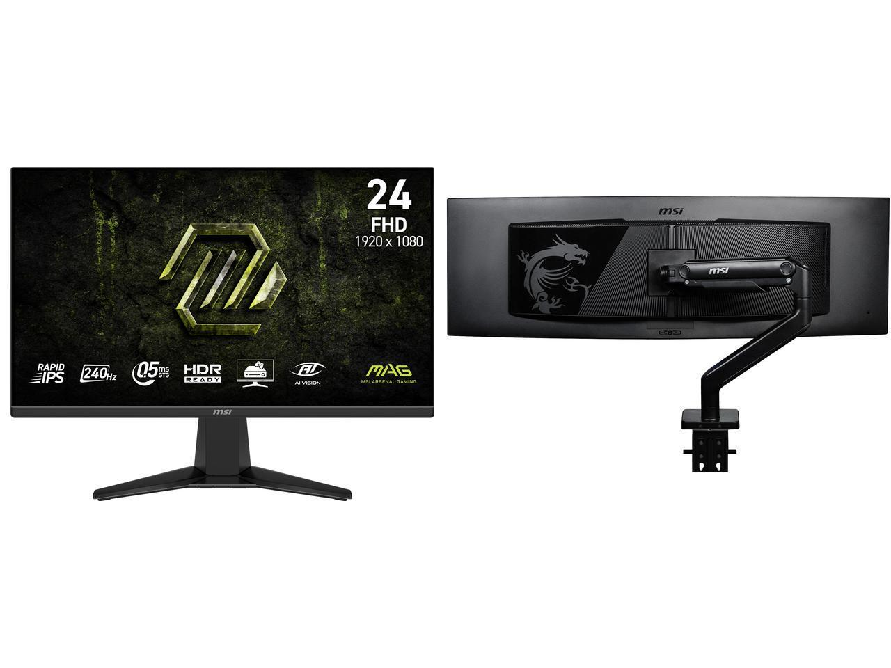 MSI 24" (23.8" viewable) Full HD 240Hz IPS 0.5ms HDR ready with AMD FreeSync (AMD Adaptive Sync) Gaming Computer Monitor MAG 245F X24 MSI MAG MT201 - Premium Heavy Duty Single Monitor Stand Arm, Supports 17-49" Screens and 44 lbs, VESA Com