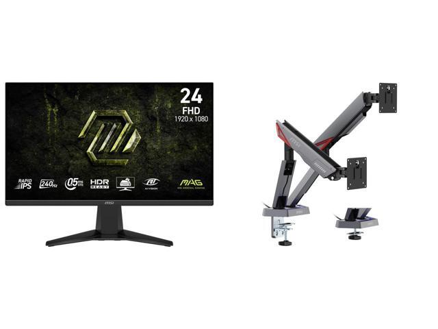 MSI 24" (23.8" viewable) Full HD 240Hz IPS 0.5ms HDR ready with AMD FreeSync (AMD Adaptive Sync) Gaming Computer Monitor MAG 245F X24 MSI MPG MT161DR - Premium RGB Dual Monitor Stand Arms, 17-38" Support, VESA Compatible, Adjustable Spring