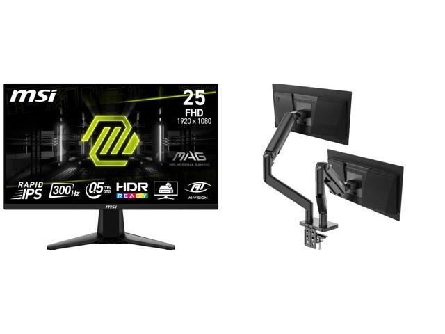 MSI 24" (24.5" viewable) Full HD 300Hz IPS with AMD FreeSync Premium 0.5ms HDR Ready Ai vision Gaming Computer Monitor MAG 255XF MSI MAG MT201D - Premium Heavy Duty Dual Monitor Stand Arms, 17-45" Support, VESA Compatible, Adjustable Spring