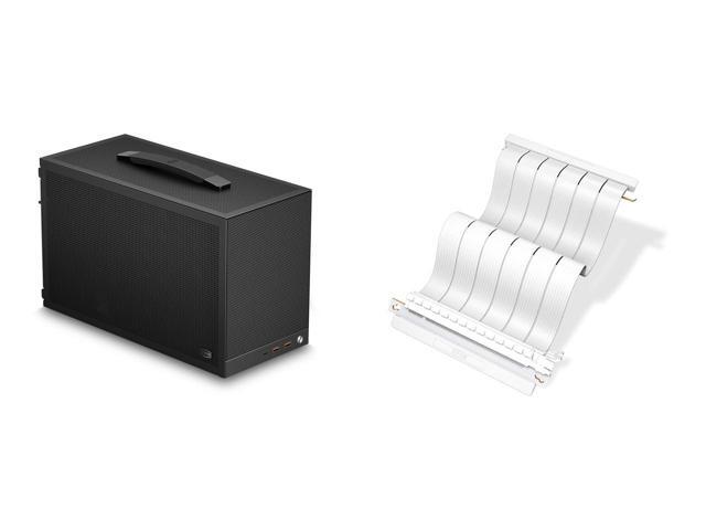 PCCOOLER CPS K101 MESH PC Case, Portable Desktop Mini ITX Case, Four-side SPCC Mesh Panel, 3 x 12015 Fans Pre-installed, Clip-on Quick Release Side Panel, Gery (PCIe Riser Cable Not Included) and 1 x PCCOOLER CPS RC185 PCI-E 4.0 X16 Riser Cable, 180 Degree Dual Reverse GPU Extension Cable, 185mm, White