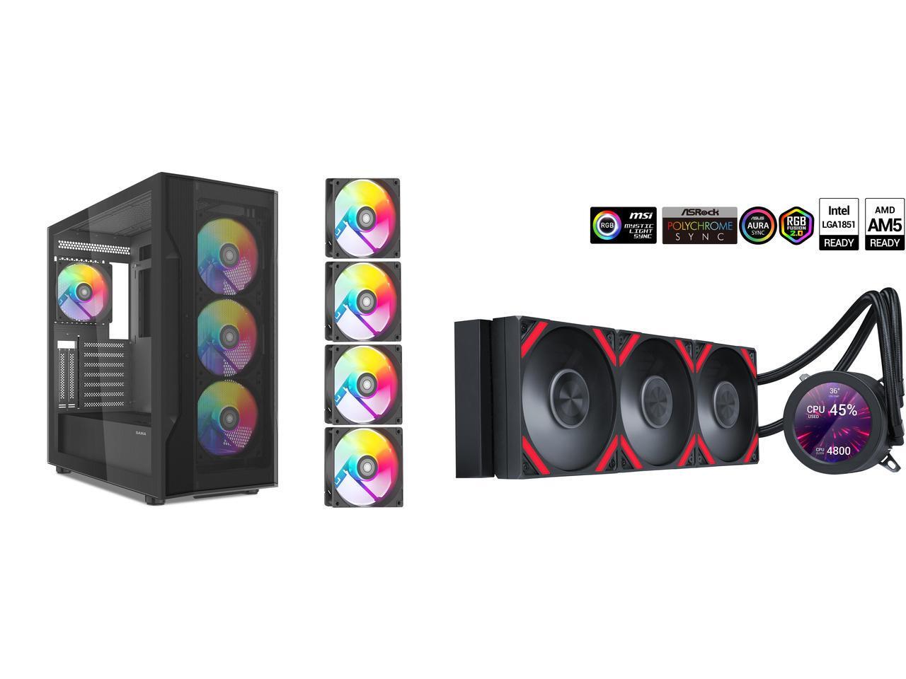 SAMA Q70 Black CPU Liquid Cooler, 360MM Liquid Water AIO CPU Cooler with 2.8" LCD Display, Magnetic Detachable, XT120 Modular Fans LCP Blade, Bonus Stands, 115X, 2011, 1200, 1700, AM4, AM5 AIO Cooler