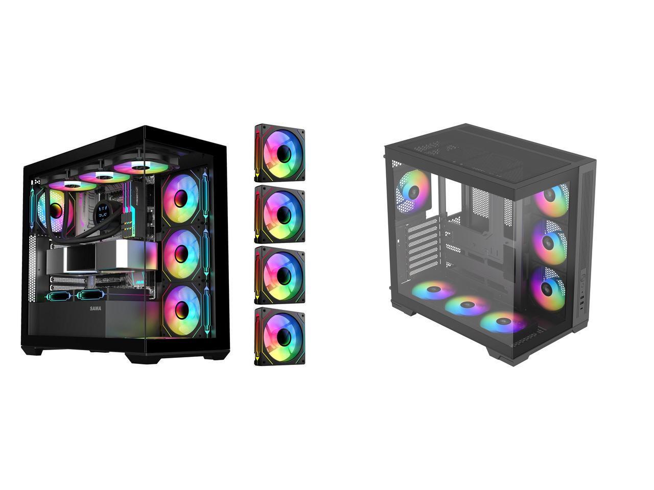 SAMA SV01 Mid Tower ATX Gaming PC Computer Case Black, 4 Addressable RGB Fans Pre-Installed, Tempered Glass Side Panel, Back Plug Motherboard Design and 1 x SAMA V52 ATX Mid Tower PC Case, Dual-Chamber Panoramic Tempered Glass Gaming Case, Back-Connect ATX Support, Type-C USB 3.2, Supports 420mm GPU & 360mm Radiator, 7 ARGB PWM Fans Included, Black