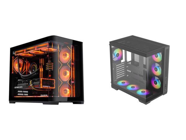 SAMA 2851 ATX Mid-Tower PC Gaming Case, High-Airflow, Sturdy Curved Tempered Glass Front, 4 ARGB PWM Fan Pre-installed with Fan Hub, Black and 1 x SAMA V52 ATX Mid Tower PC Case, Dual-Chamber Panoramic Tempered Glass Gaming Case, Back-Connect ATX Support, Type-C USB 3.2, Supports 420mm GPU & 360mm Radiator, 7 ARGB PWM Fans Included, Black