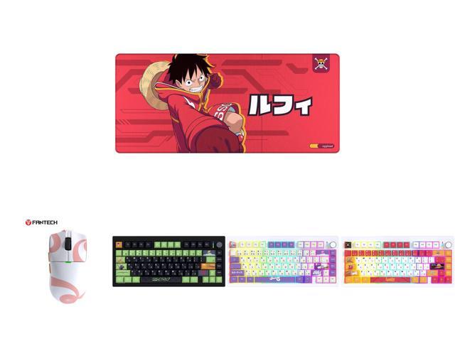 FANTECH One Piece Edition Luffy Gaming mousepad, MP905 Deskmat, Wear-resistant, waterproof, and slip-resistant rubber mat with a stylish design, 36*16*0.2 inch mouse pad, Red and 1 x Fantech One Piece Nami Edition Wireless Gaming Mouse, PixArt PAW3311 Sensor, 57g Lightweight, Tri-Mode Connectivity, RGB Charging Dock, 12000 DPI for PC & Mac, WG13E PINK and 1 x FANTECH MK921 Gaming Mechanical Keyboard,One Piece Edition, Wireless/Wired/BT Connection ,RBG Controls, 80 Keys, USB-C Interface, White Shaft, Black Green,Zoro and 1 x FANTECH MK921 Gaming Mechanical Keyboard,One Piece Edition, Wireless/Wired/BT Connection ,RBG Controls, 80 Keys, USB-C Interface, White Shaft, White Purple,Gear5 and 1 x FANTECH MK921 Gaming Mechanical Keyboard,One Piece Edition, Wireless/Wired/BT Connection ,RBG Controls, 80 Keys, USB-C Interface, White Shaft, White red,Luffy
