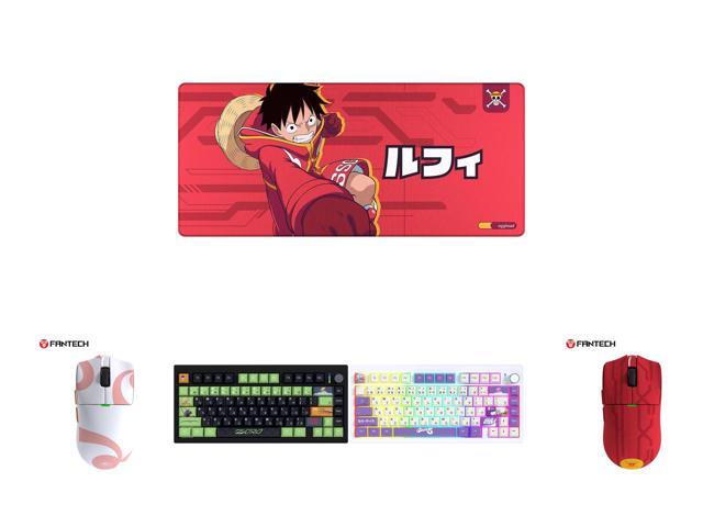 FANTECH One Piece Edition Luffy Gaming mousepad, MP905 Deskmat, Wear-resistant, waterproof, and slip-resistant rubber mat with a stylish design, 36*16*0.2 inch mouse pad, Red and 1 x Fantech One Piece Nami Edition Wireless Gaming Mouse, PixArt PAW3311 Sensor, 57g Lightweight, Tri-Mode Connectivity, RGB Charging Dock, 12000 DPI for PC & Mac, WG13E PINK and 1 x FANTECH MK921 Gaming Mechanical Keyboard,One Piece Edition, Wireless/Wired/BT Connection ,RBG Controls, 80 Keys, USB-C Interface, White Shaft, Black Green,Zoro and 1 x FANTECH MK921 Gaming Mechanical Keyboard,One Piece Edition, Wireless/Wired/BT Connection ,RBG Controls, 80 Keys, USB-C Interface, White Shaft, White Purple,Gear5 and 1 x Fantech One Piece Luffy Edition Wireless Gaming Mouse, PixArt PAW3311 Sensor, 57g Lightweight, Tri-Mode Connectivity, RGB Charging Dock, 12000 DPI for PC & Mac, WG13E Red