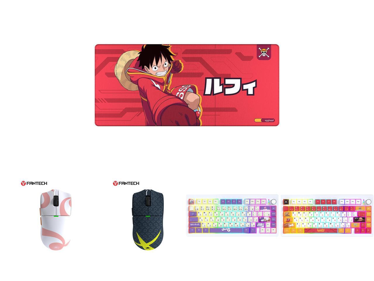 FANTECH One Piece Edition Luffy Gaming mousepad, MP905 Deskmat, Wear-resistant, waterproof, and slip-resistant rubber mat with a stylish design, 36*16*0.2 inch mouse pad, Red and 1 x Fantech One Piece Nami Edition Wireless Gaming Mouse, PixArt PAW3311 Sensor, 57g Lightweight, Tri-Mode Connectivity, RGB Charging Dock, 12000 DPI for PC & Mac, WG13E PINK and 1 x Fantech One Piece Zoro Edition Wireless Gaming Mouse, PixArt PAW3311 Sensor, 57g Lightweight, Tri-Mode Connectivity, RGB Charging Dock, 12000 DPI for PC & Mac, WG13E Deep Blue and 1 x FANTECH MK921 Gaming Mechanical Keyboard,One Piece Edition, Wireless/Wired/BT Connection ,RBG Controls, 80 Keys, USB-C Interface, White Shaft, White Purple,Gear5 and 1 x FANTECH MK921 Gaming Mechanical Keyboard,One Piece Edition, Wireless/Wired/BT Connection ,RBG Controls, 80 Keys, USB-C Interface, White Shaft, White red,Luffy