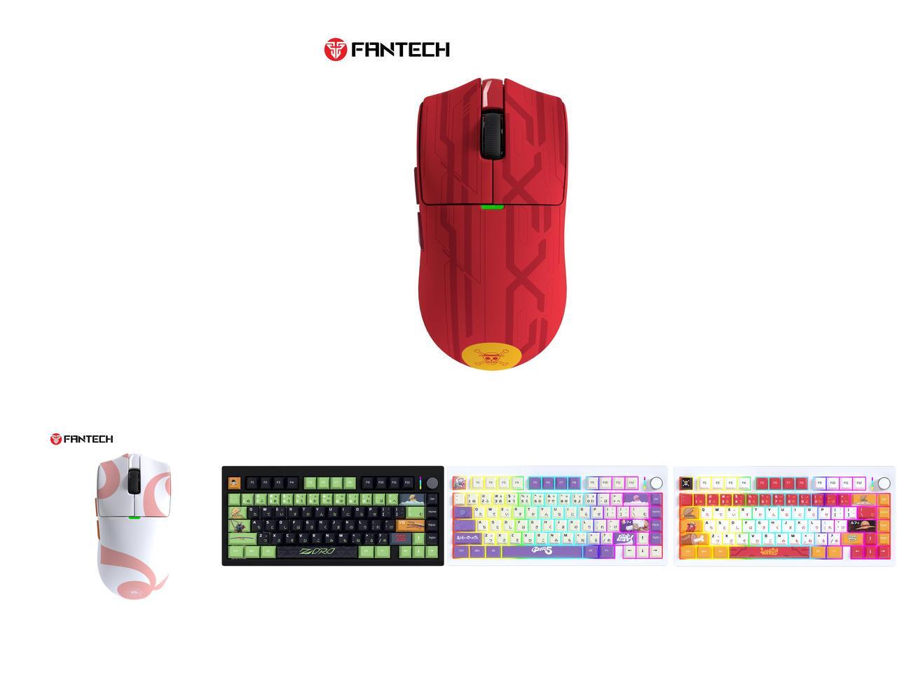 Fantech One Piece Luffy Edition Wireless Gaming Mouse, PixArt PAW3311 Sensor, 57g Lightweight, Tri-Mode Connectivity, RGB Charging Dock, 12000 DPI for PC & Mac, WG13E Red and 1 x Fantech One Piece Nami Edition Wireless Gaming Mouse, PixArt PAW3311 Sensor, 57g Lightweight, Tri-Mode Connectivity, RGB Charging Dock, 12000 DPI for PC & Mac, WG13E PINK and 1 x FANTECH MK921 Gaming Mechanical Keyboard,One Piece Edition, Wireless/Wired/BT Connection ,RBG Controls, 80 Keys, USB-C Interface, White Shaft, Black Green,Zoro and 1 x FANTECH MK921 Gaming Mechanical Keyboard,One Piece Edition, Wireless/Wired/BT Connection ,RBG Controls, 80 Keys, USB-C Interface, White Shaft, White Purple,Gear5 and 1 x FANTECH MK921 Gaming Mechanical Keyboard,One Piece Edition, Wireless/Wired/BT Connection ,RBG Controls, 80 Keys, USB-C Interface, White Shaft, White red,Luffy