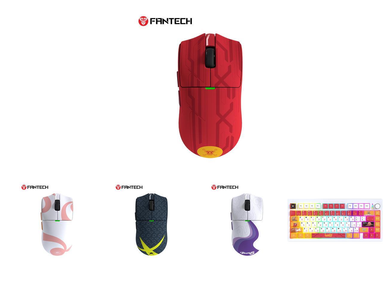 Fantech One Piece Luffy Edition Wireless Gaming Mouse, PixArt PAW3311 Sensor, 57g Lightweight, Tri-Mode Connectivity, RGB Charging Dock, 12000 DPI for PC & Mac, WG13E Red and 1 x Fantech One Piece Nami Edition Wireless Gaming Mouse, PixArt PAW3311 Sensor, 57g Lightweight, Tri-Mode Connectivity, RGB Charging Dock, 12000 DPI for PC & Mac, WG13E PINK and 1 x Fantech One Piece Zoro Edition Wireless Gaming Mouse, PixArt PAW3311 Sensor, 57g Lightweight, Tri-Mode Connectivity, RGB Charging Dock, 12000 DPI for PC & Mac, WG13E Deep Blue and 1 x Fantech One Piece Gear 5 Luffy Edition Wireless Gaming Mouse, PixArt PAW3311 Sensor, 57g Lightweight, Tri-Mode Connectivity, RGB Charging Dock, 12000 DPI for PC & Mac, WG13E Purple and 1 x FANTECH MK921 Gaming Mechanical Keyboard,One Piece Edition, Wireless/Wired/BT Connection ,RBG Controls, 80 Keys, USB-C Interface, White Shaft, White red,Luffy